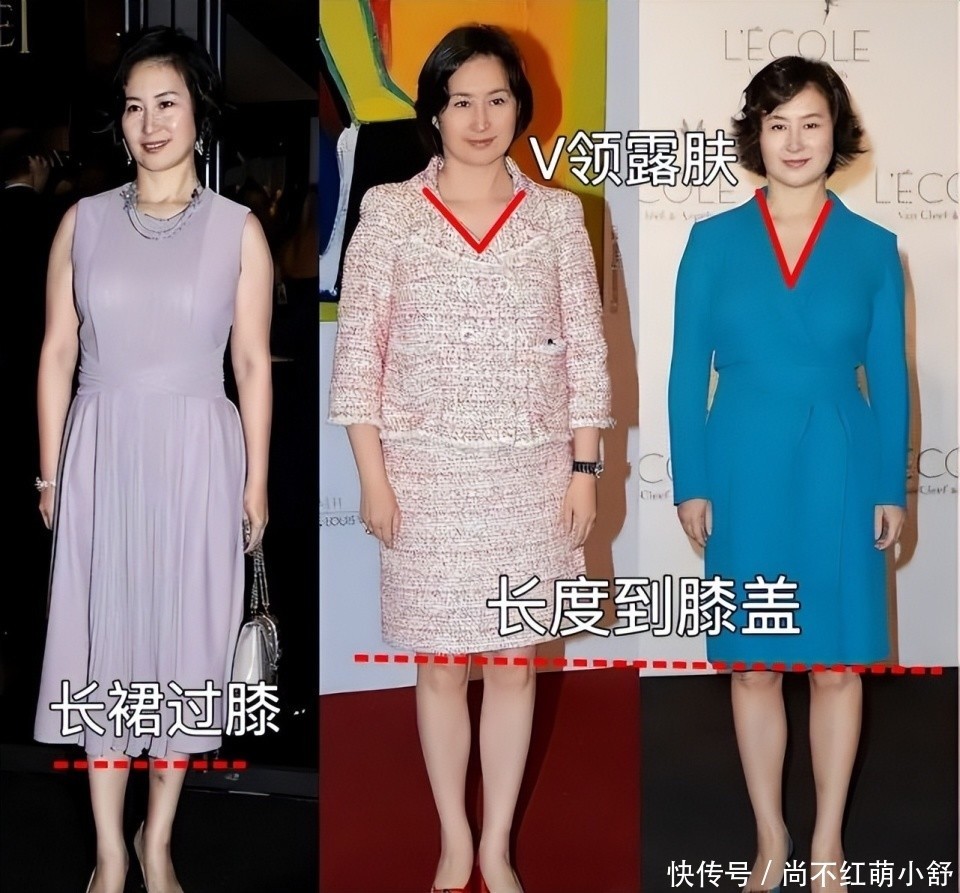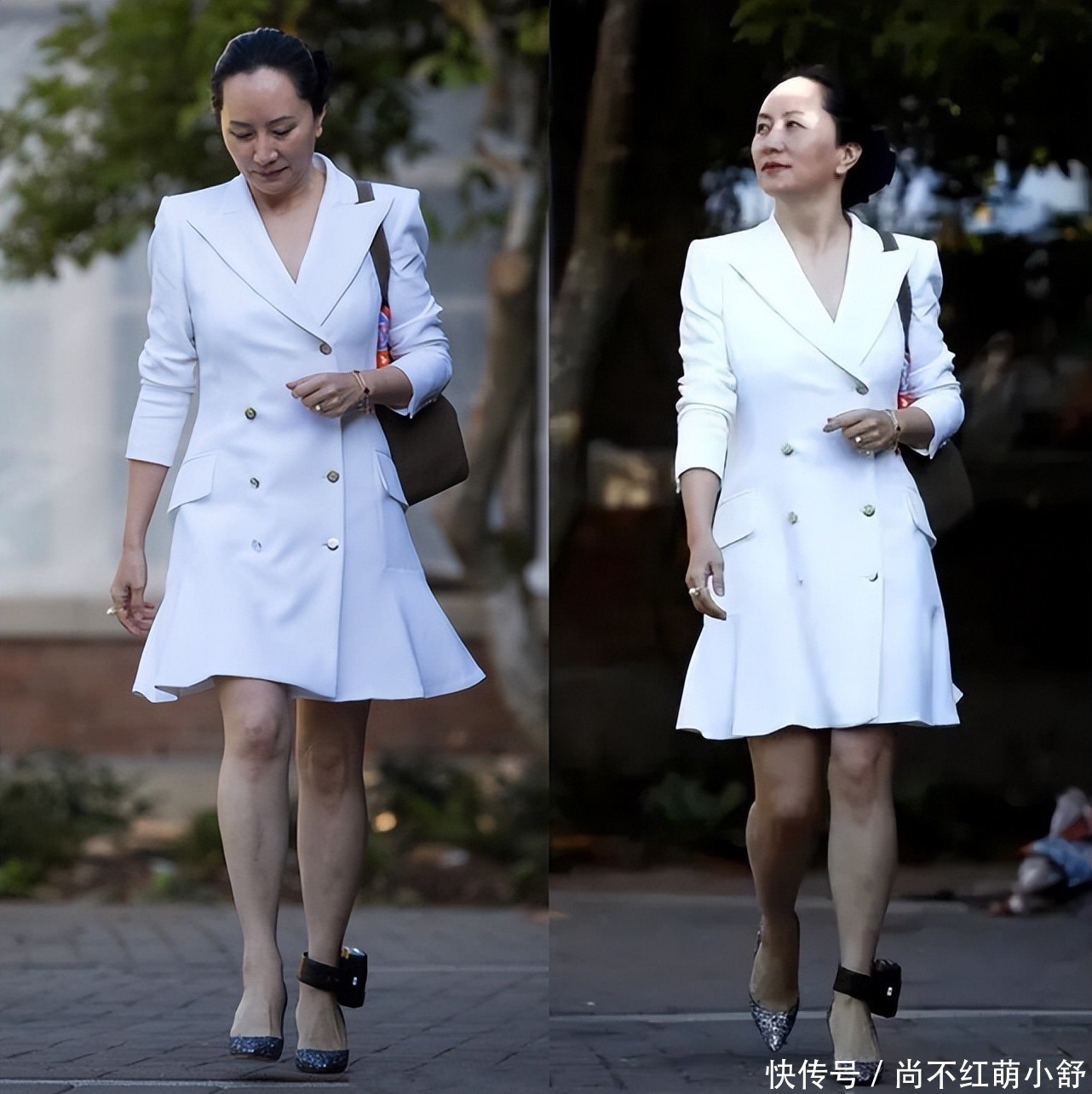 技巧要点:选择及膝或及踝裙装,避免短裙暴露腿型短板,同时通过高腰线设计优化比例。孟晚舟的直筒裙与何超琼的伞裙均为示范。适用场景:职场、社交活动皆宜,搭配尖头鞋或低跟鞋更显从容。